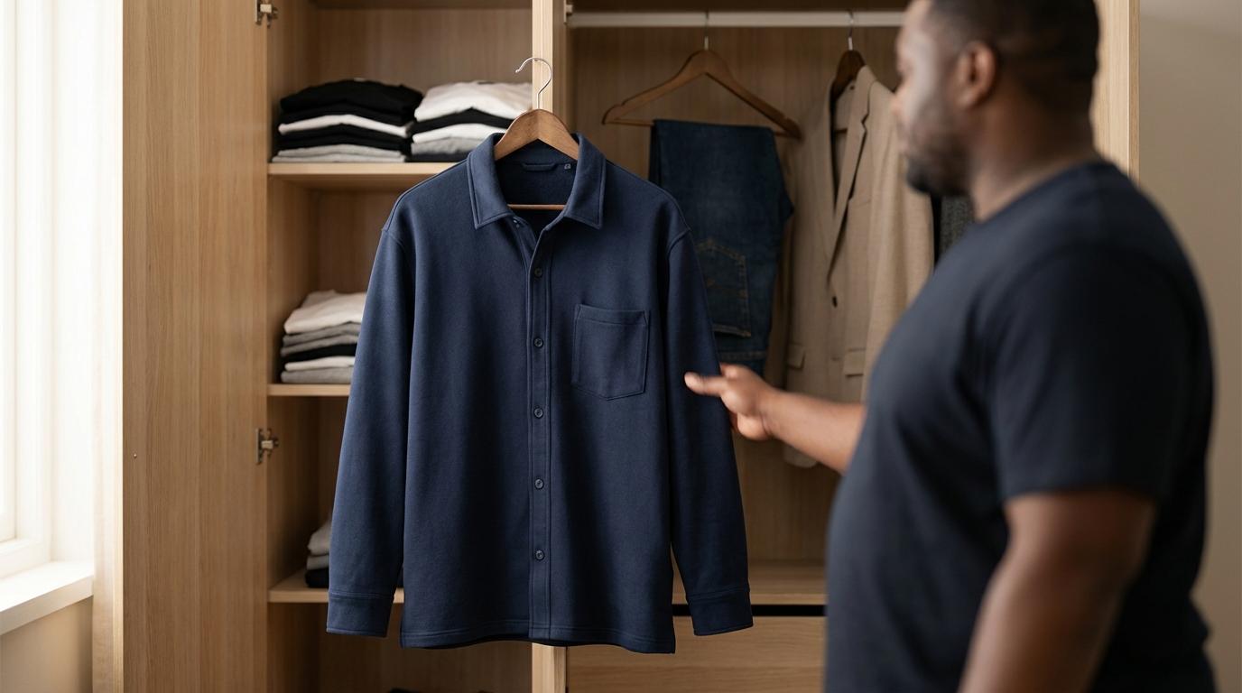 Et tyndt inderlag (T-shirt eller undertrøje), et pænt mellemlag (skjorte, overshirt eller tynd strik), og et yderlag efter behov. Når hvert lag har sin funktion, undgår du “klump”-fornemmelsen.