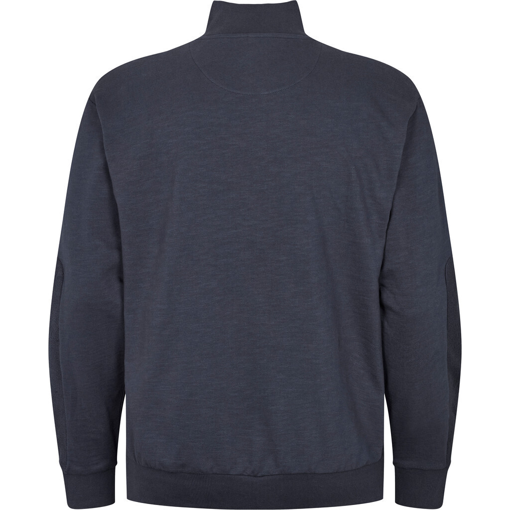 Sweatshirt fra North 56°4 med halv lynlås, printet sildebenstape på brystet og et lille print forneden, med rib ved ærmet og forneden. Strik er lavet i bomuldsslibfrotté, ikke børstet.