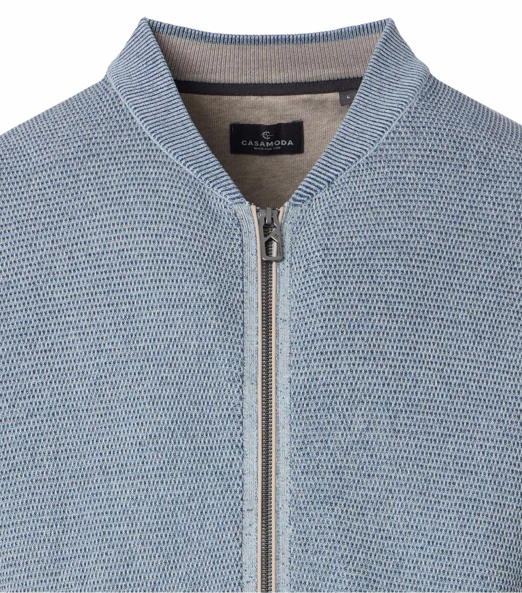 Strickjacke von Casa Moda aus flachgestrickter Baumwolle hellblau