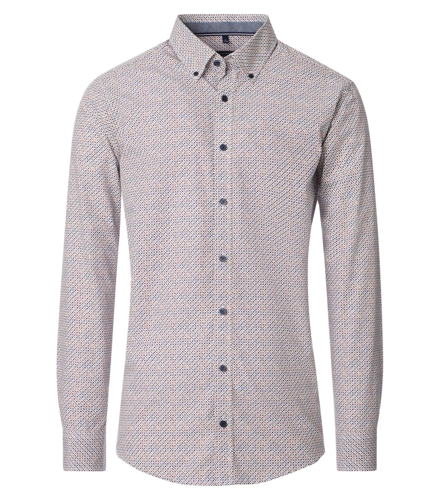 Casa Moda lang ærmet skjorte i comfort fit med det lækket mønster i brun nuance