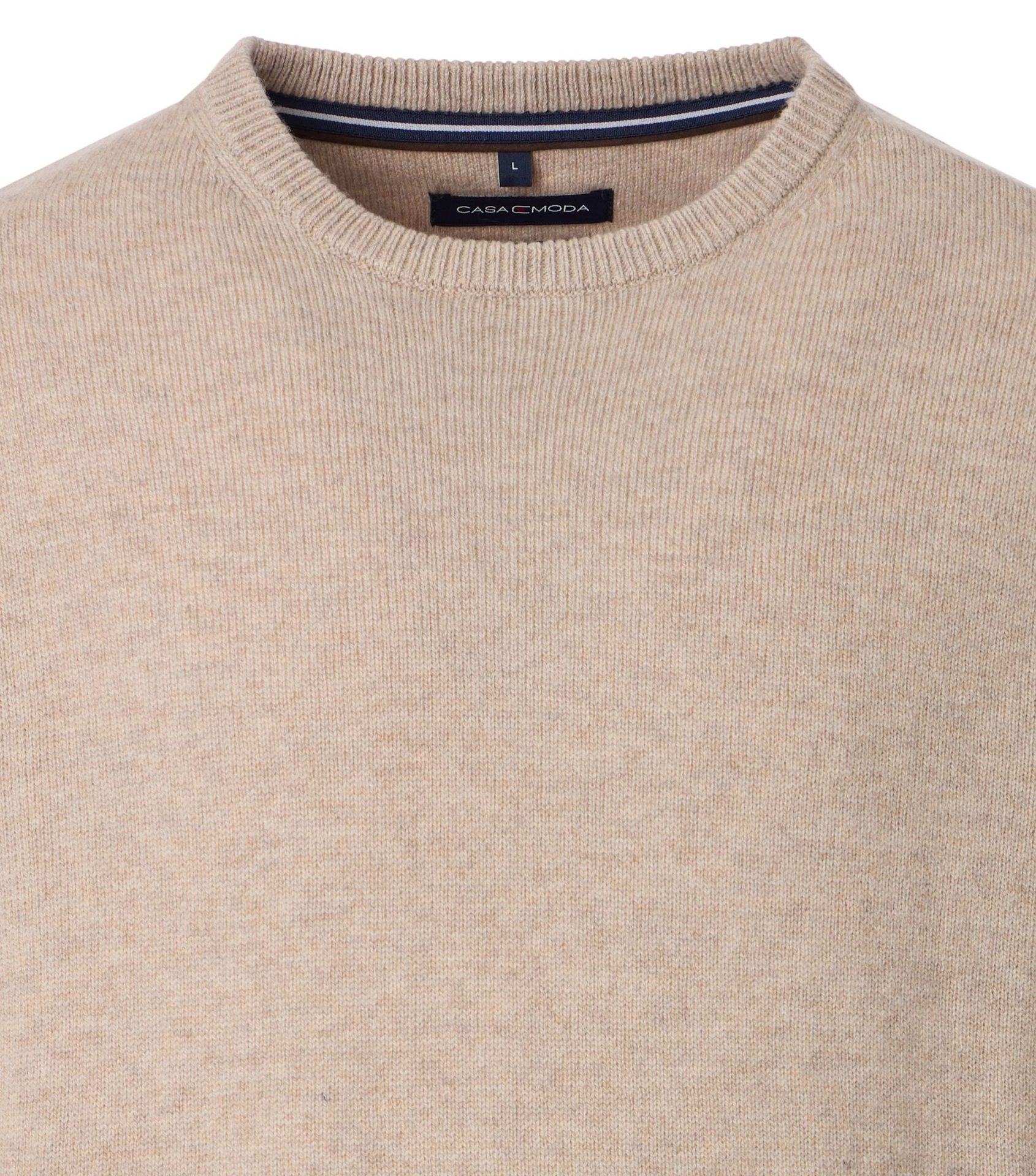 Casa Moda striktrøje med rund hals i uld blanding lys sand.