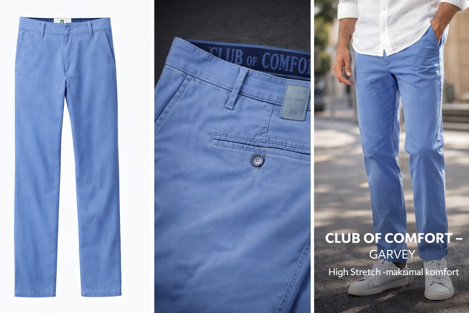 CLUB of COMFORT model GARVEY, en chino i bomuld/spandex og i mellem blå