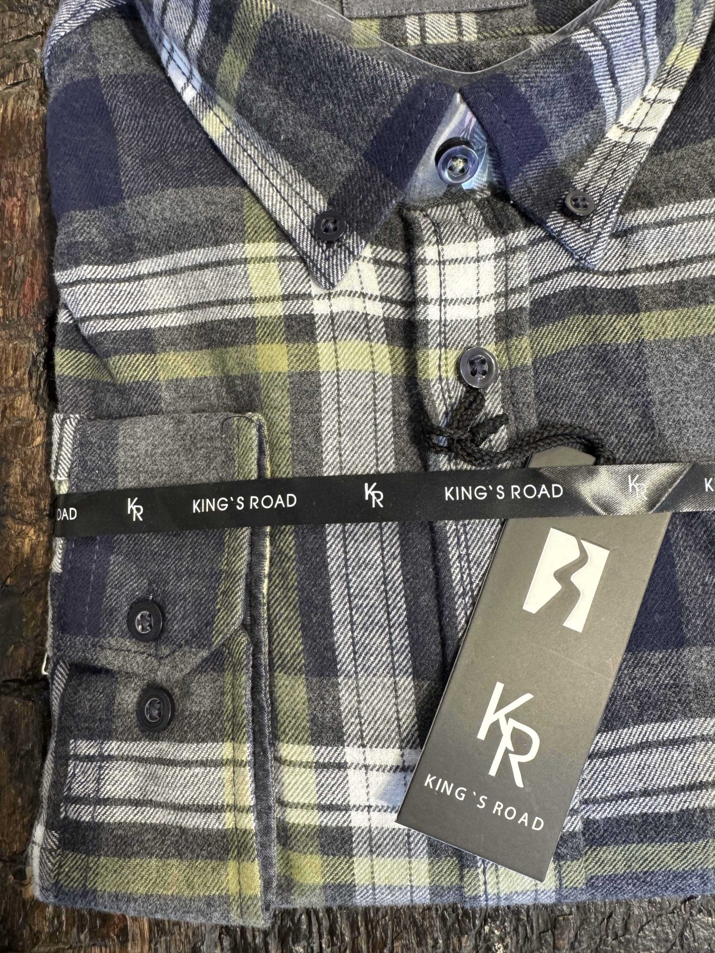 Kings Road flannel skjorte en brystlommer grøn, blå hvid ternet
