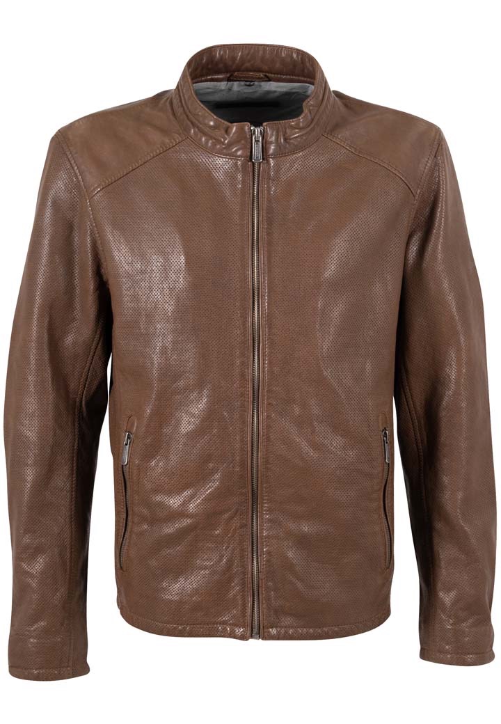 Mauritius biker skindjakke med hul perforeret skind i brun