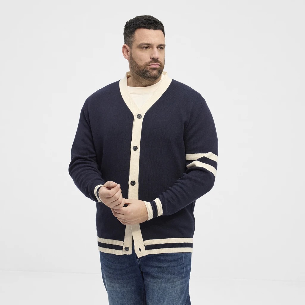 North Latitude Stilfuld cardigan i 100% bomuld, designet med sporty striber på ærmerne og kontrastdetaljer TALL