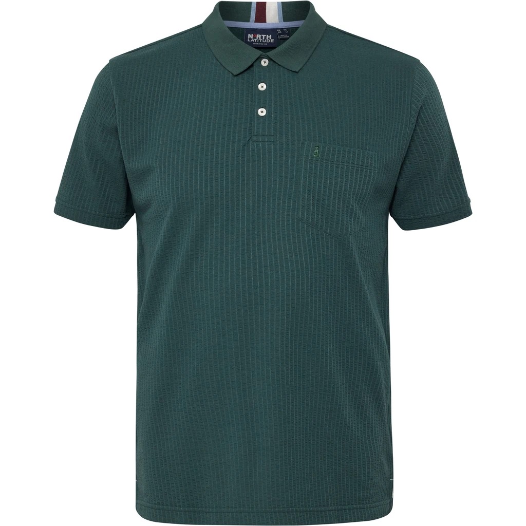 North Latitude struktur polo i et klassisk snit med brystlomme og kontrastkrave. Den slidstærke bomulds- og polyesterblanding giver både komfort og holdbarhed. Et tidløst valg med et diskret twist i overfladen.