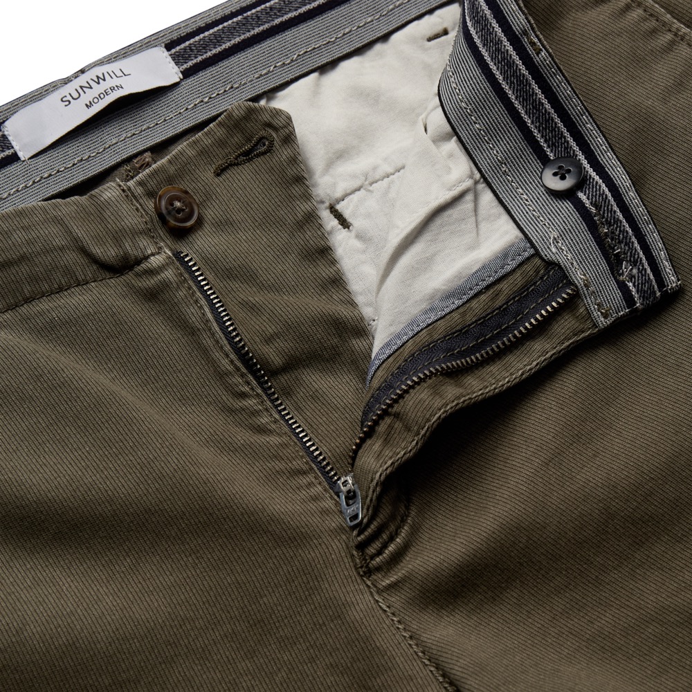 Sunwill bomuldsbukser modern fit med Paspolerede baglommer med klap GRØN